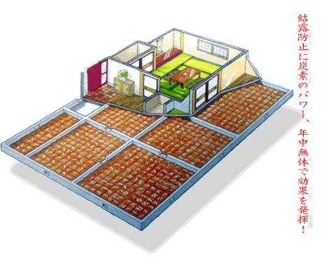 大切な住まいを守る、縁の下の力持ち。「炭素系微粒炭・湿とる炭」は、床下に敷きつめるだけで結露を防止。